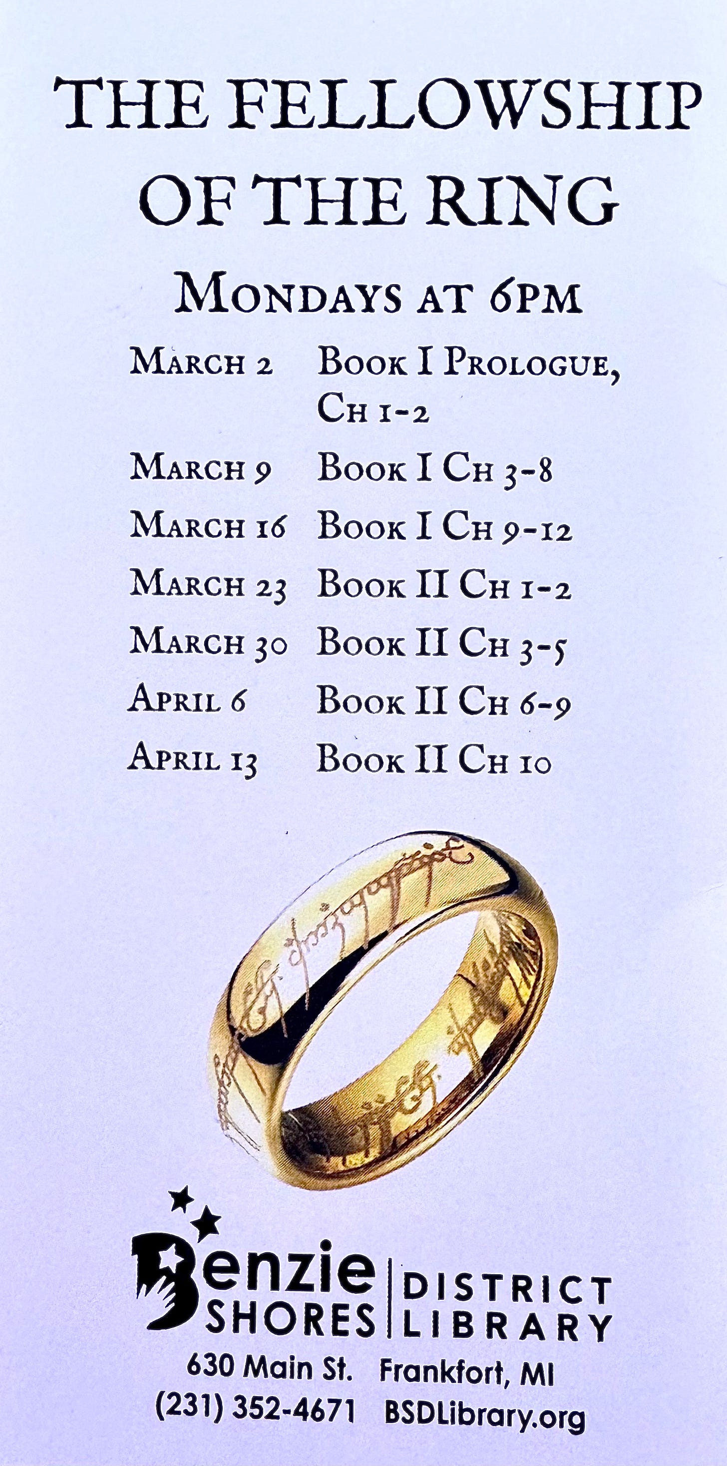 Benzie Shores Library Hosts Fellowship of the Ring Reading Group