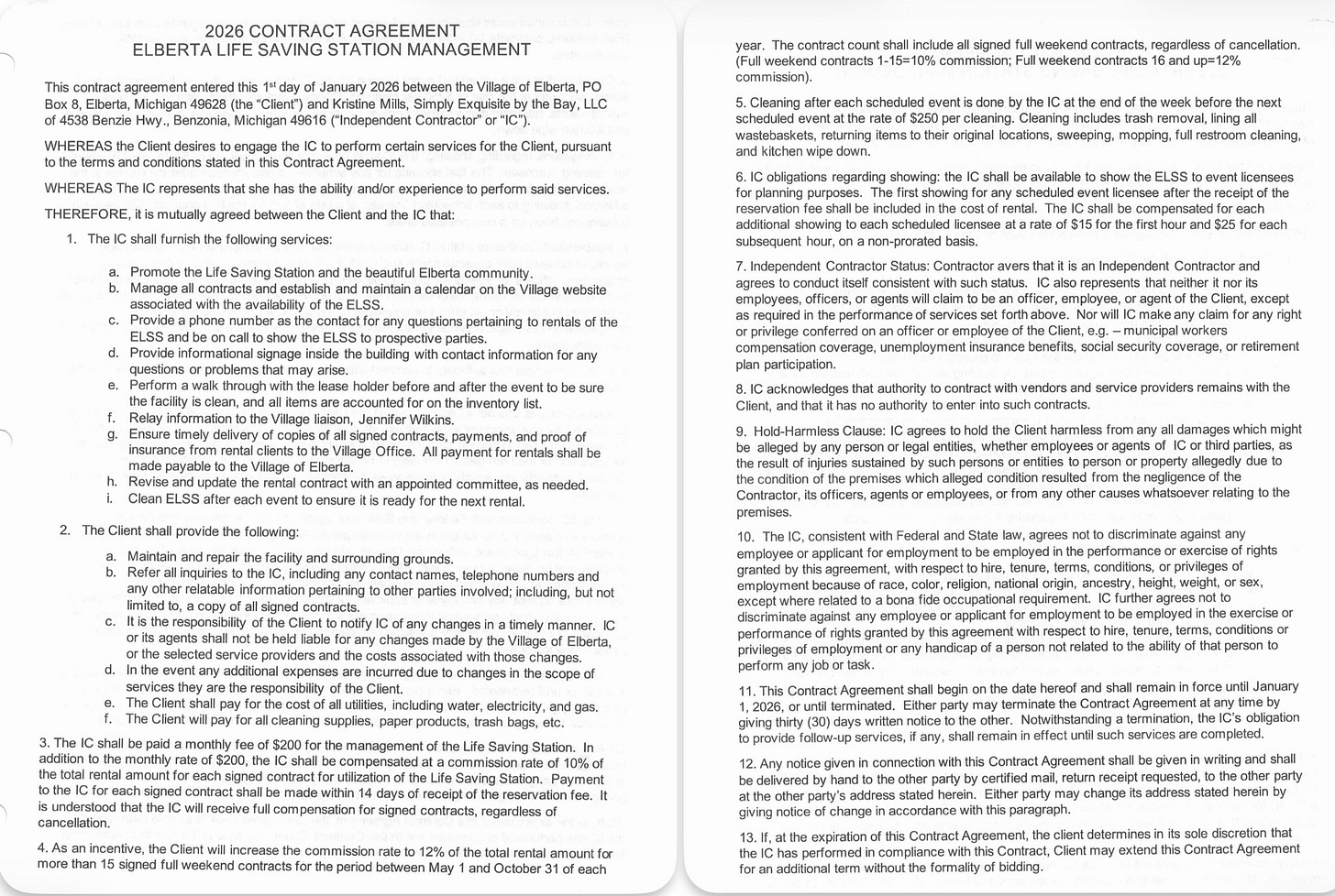Council Renewed the Contract With Kristine Mills to Manage the ELSS