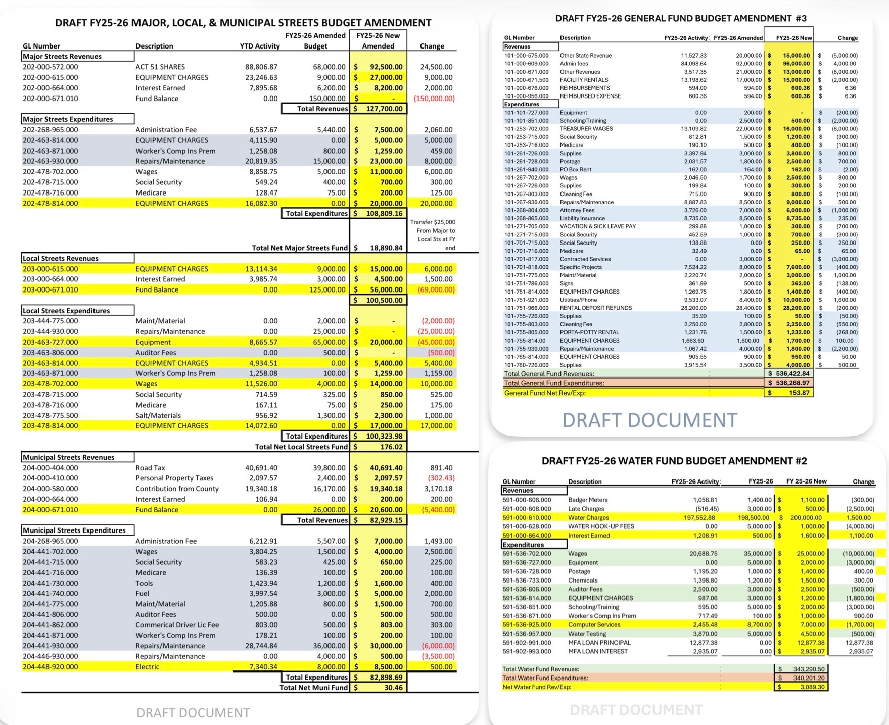 “The utility billing wage appeared to decrease this year because last year’s budget combined the wages of utility billing clerk and deputy clerk. This year represents only the utility billing clerk. The water fund as of February 18, 2026, shows a net position of $135,164.14; when you subtract the prior year [which was] in a deficit of $14,543, [it] reflects a surplus, but final figures will be confirmed in the annual audit. It was projected that we’d be out of it this year and it appears that we are.